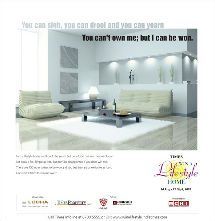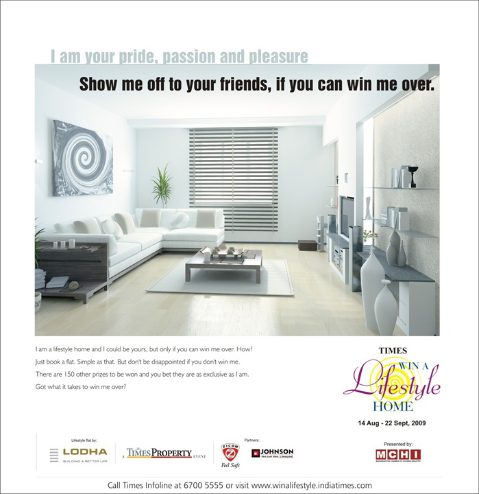 Book a home during the event (organized and promoted by MCHI) and win a luxurious home! This simple brief, we thought, needed a different approach. After all, the potential home-buyers had to believe that they had a chance to win that luxurious oomph of a residence. And voila! The home spoke to its would-be winner.